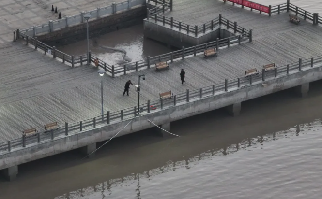 2月23日清晨5点多,天蒙蒙亮,舟山市定海区环境卫生管理中心工人钟耿平正自西北向东南清扫海滨公园。前一天下午,舟山刚刚起了大风,因而这时候的海滨公园体感温度很低,周围晨练的人也少。