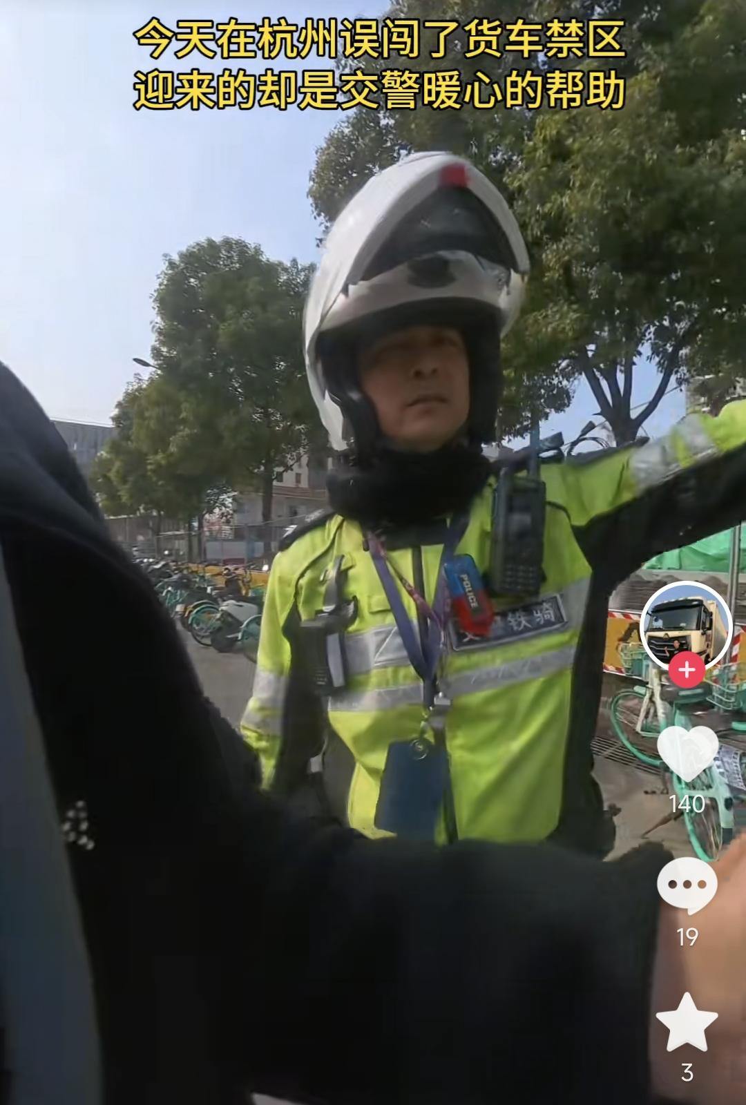 那天来杭州送货的他不小心误闯了货车禁区,交警不仅没罚款,还暖心为他指明了方向。