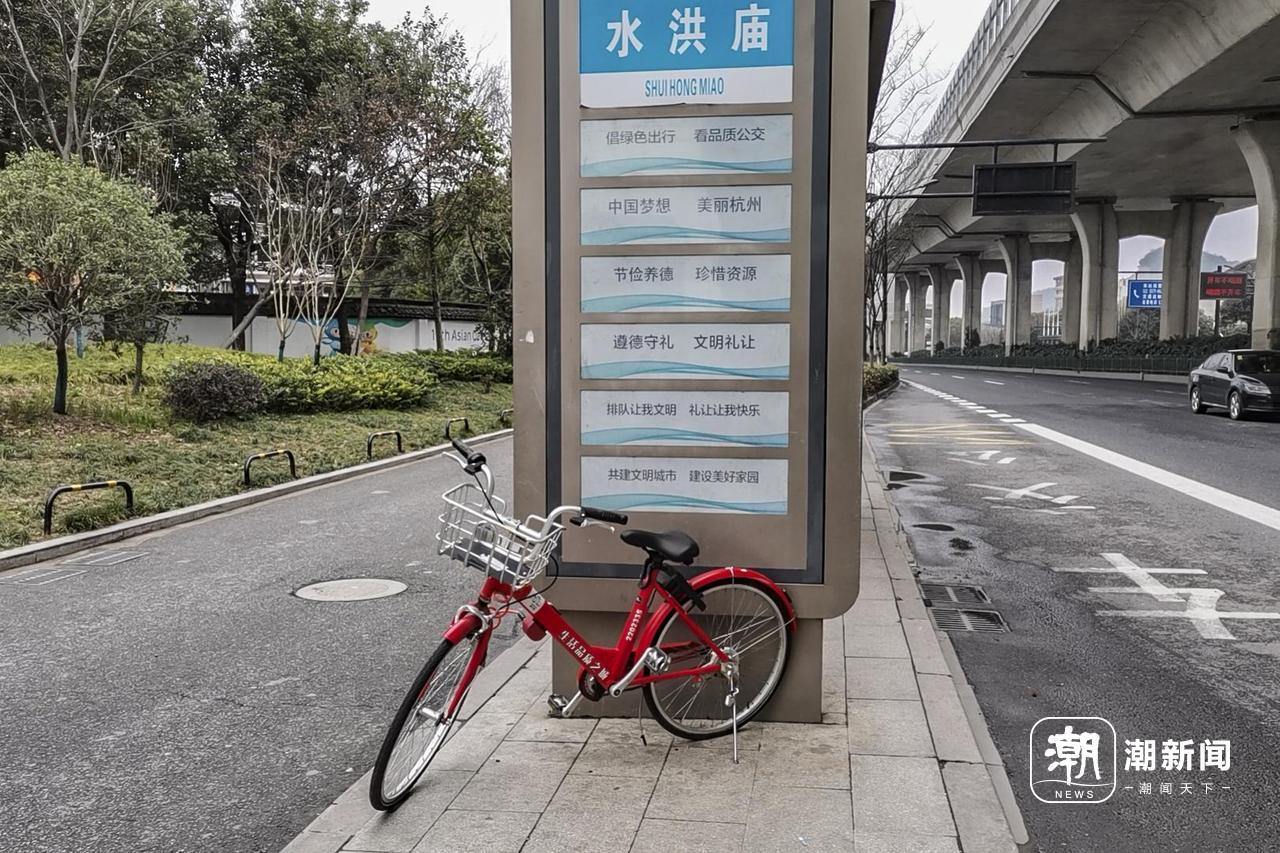 在杭州市临平区崇贤街道水洪庙公交车站,一辆“流浪的小红车”被发现。潮新闻记者杨晓轩/摄