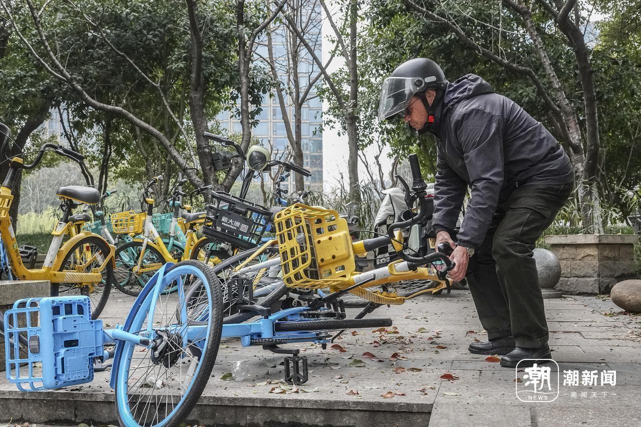 为了不让这些小红车继续“流浪”,柴大伯选择最笨也最有效的办法:清晨出击,趁着街道空旷,那些被遗弃在死角的小红车更容易被发现。一旦锁定目标,他便通过车身编号与手机小程序比对核实,确认报失后,再用电动车艰难地将其拖回最近的公共自行车租车点。