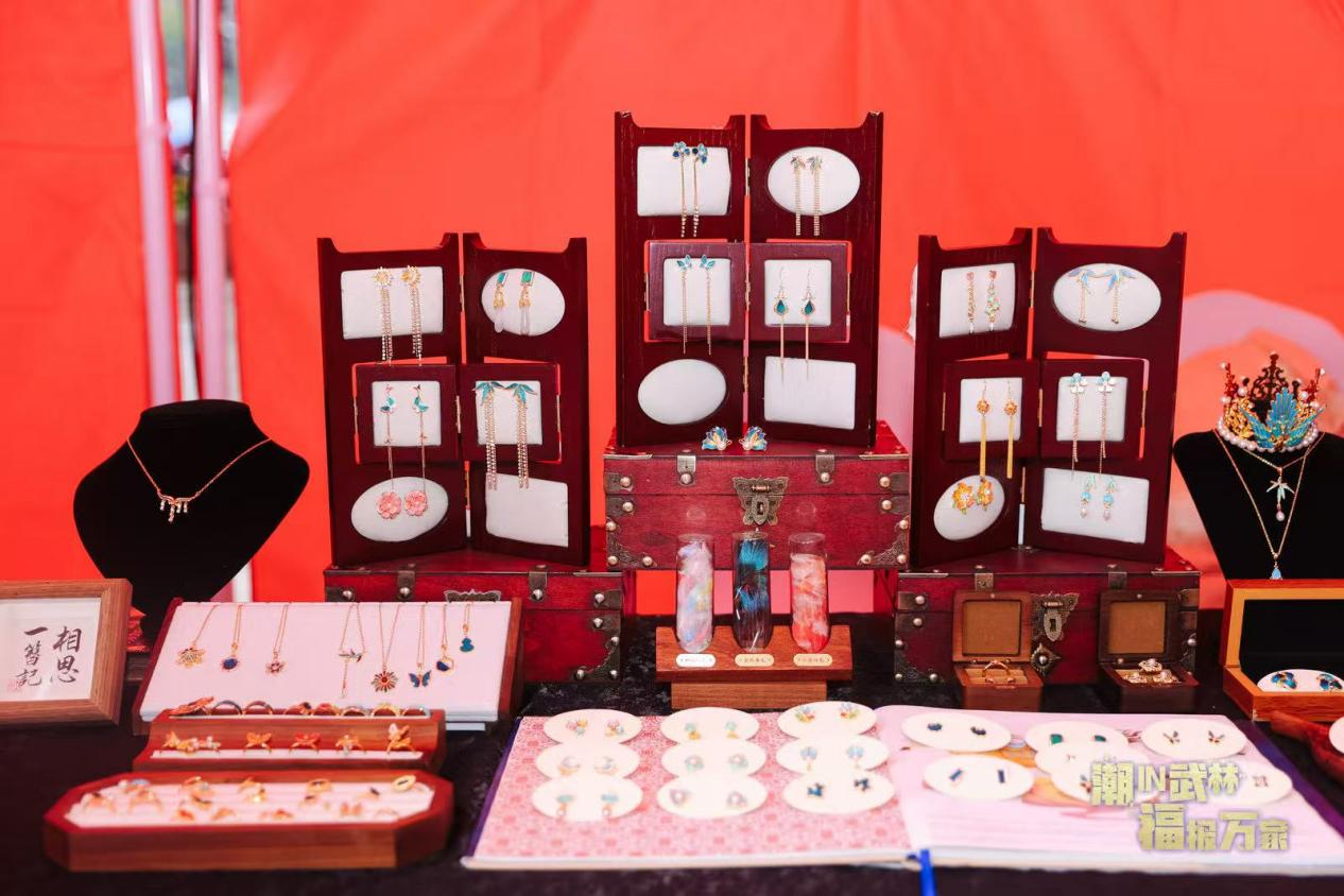 现场各大手工文创摊位上,花丝点翠、绒花发簪、蝶翅画等手作,将自然灵韵与东方美学完美交融,精巧动人。