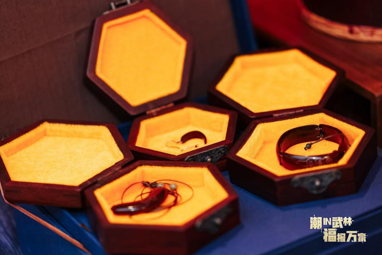 其非遗传承人陈青华本次带来了动物造型梳、莲花车挂、手串等精巧好物。“我们在保留传统工艺的基础上融入现代审美,让古朴木作变身轻便实用的生活美物,让非遗从博物馆走向寻常百姓家。”她一边介绍,一边展示以良渚文化为灵感的“良渚余韵”系列作品,小叶紫檀搭配银丝镶嵌,古韵与精致兼具。