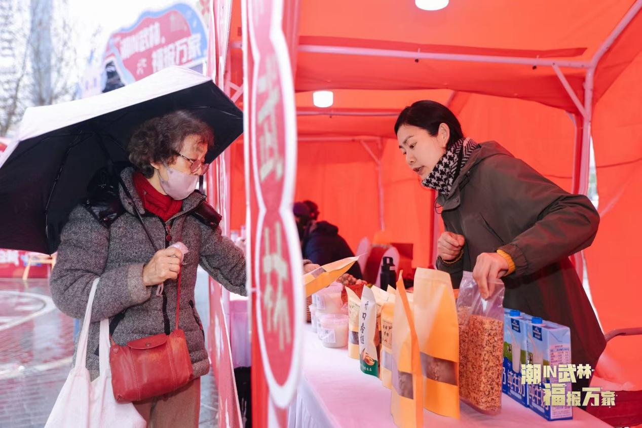 市集之上,老少同乐、笑意盈盈。杭州市民楼女士一家冒雨而来,手中拎着农特产品与文创小物,脸上洋溢着满足:“元宵逛灯会、逛集市,是我们‘老底子’的必须活动,再大的雨也要全家一起出动。虽然天公不作美,但今天收获满满,特别开心。”