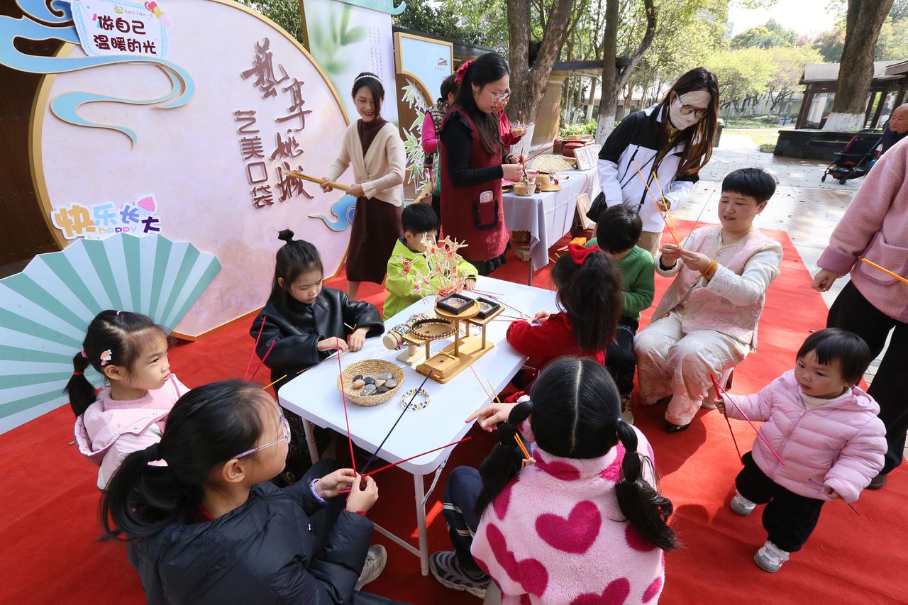 3月28日,由余姚市民间文艺家协会承办,以"林间手作,草木成织"为主题的各类自然编织非遗项目,“艺享姚城”城市文艺微展演全新板块“艺美口袋”体验活动在南雷口袋公园举行。