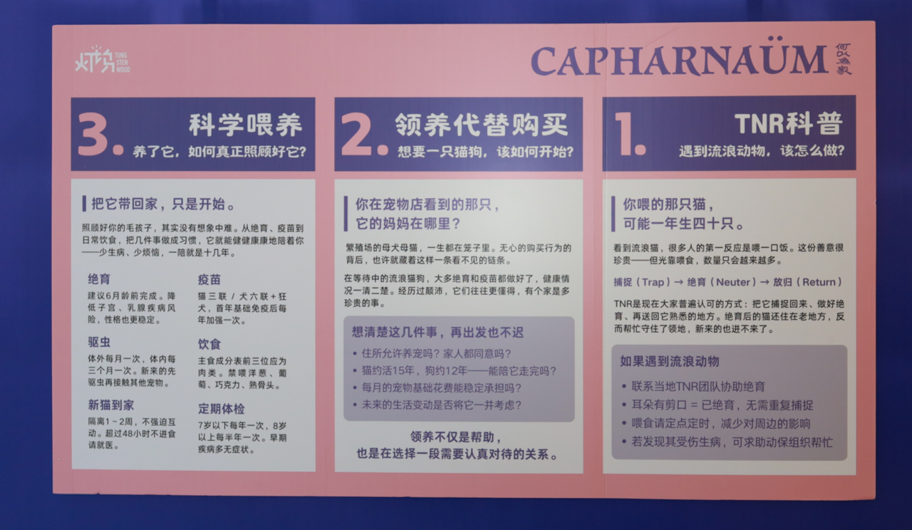 两天来,有不少市民专程赶来观展,公益义卖和领养宣传也同步推进。胡颖说,最让他感动的,就是那个与妈妈对话的孩子,“这就是我做展览的初衷,不是刻意煽情,只是想让大家静下心来,听听这些毛孩子的无声诉求。”