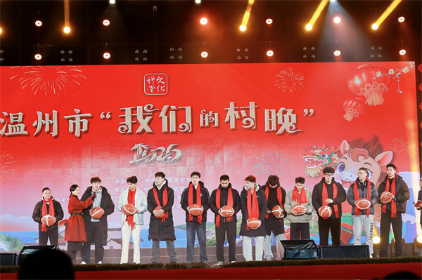在晚会的中场时间,一个特别的环节将现场气氛推向高潮——“浙BA”赛事温州队与苍南队的球员们惊喜登场。他们不仅与观众玩起猜谜互动,并送出多个亲笔签名的篮球。“没想到来看‘村晚’,还能拿到球星送出的礼物!”猜中字谜赢得篮球的当地市民夏先生说。这场文体融合的互动,不仅送出惊喜,也凝聚起一份共同的热血与乡情。