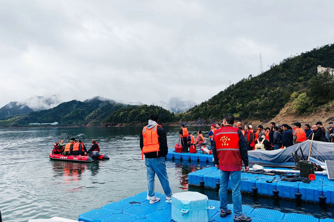 成达是浙江永安水务集团的工作人员,这是他参与清明义务摆渡的第四个年头。“从码头到最里头,来回一趟得一个多小时。只要看见岸边有人招手,我们都会靠过去接。”有些停靠点坡陡石滑,成达和同事就得提前下船,在礁石间固定船身,再一趟趟搀扶乡亲上下。