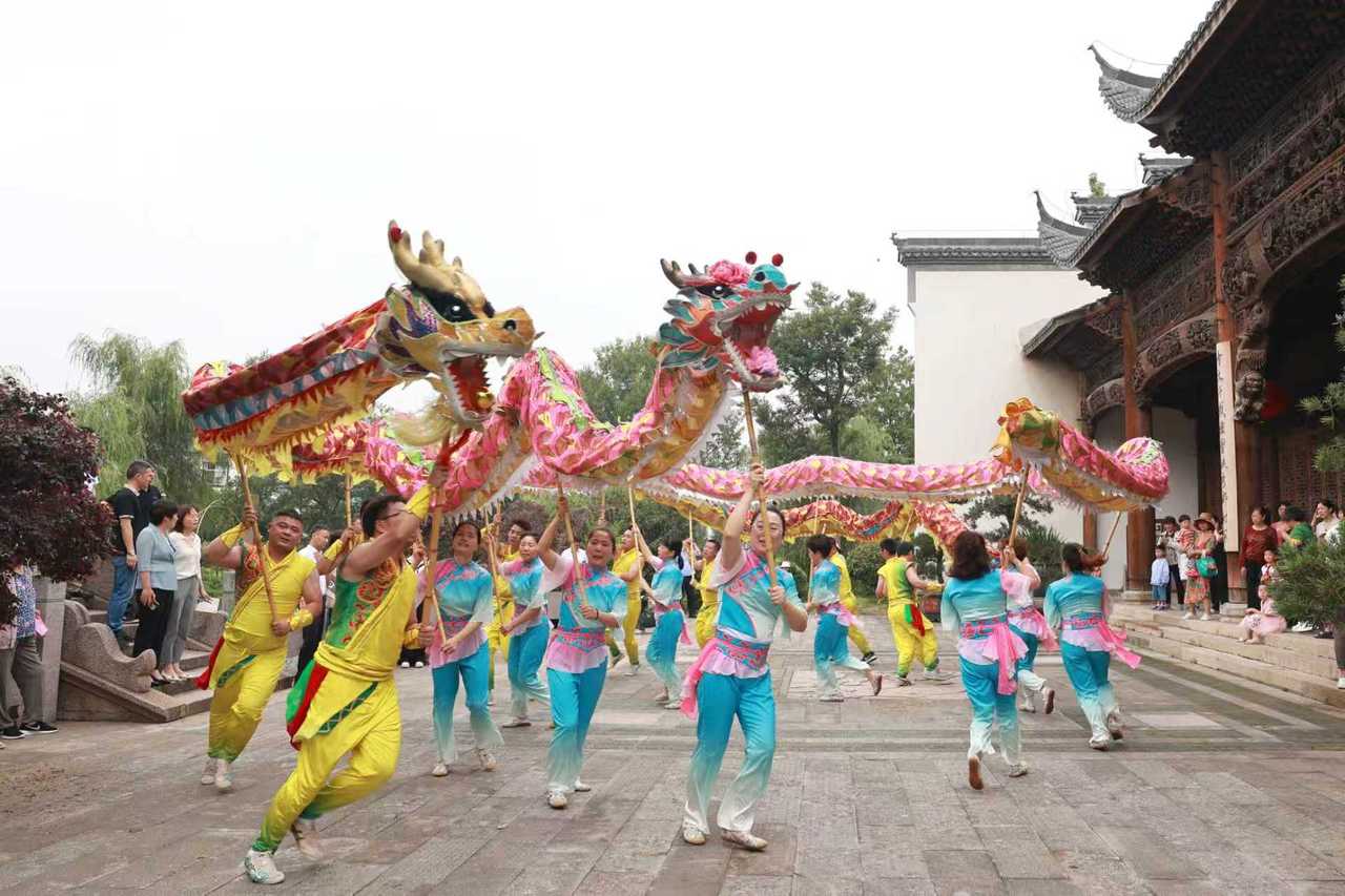 如今,“鸳鸯龙”队伍群体已扩展到村外,参与传承的人有村干部、教师、企业职员,平时训练的队伍更是扩展到了三十余人。“鸳鸯龙”也步入校园,在学校成立了传承基地,开设传承课堂,让孩子们感受舞龙的乐趣,从心底种下非遗传承的种子。